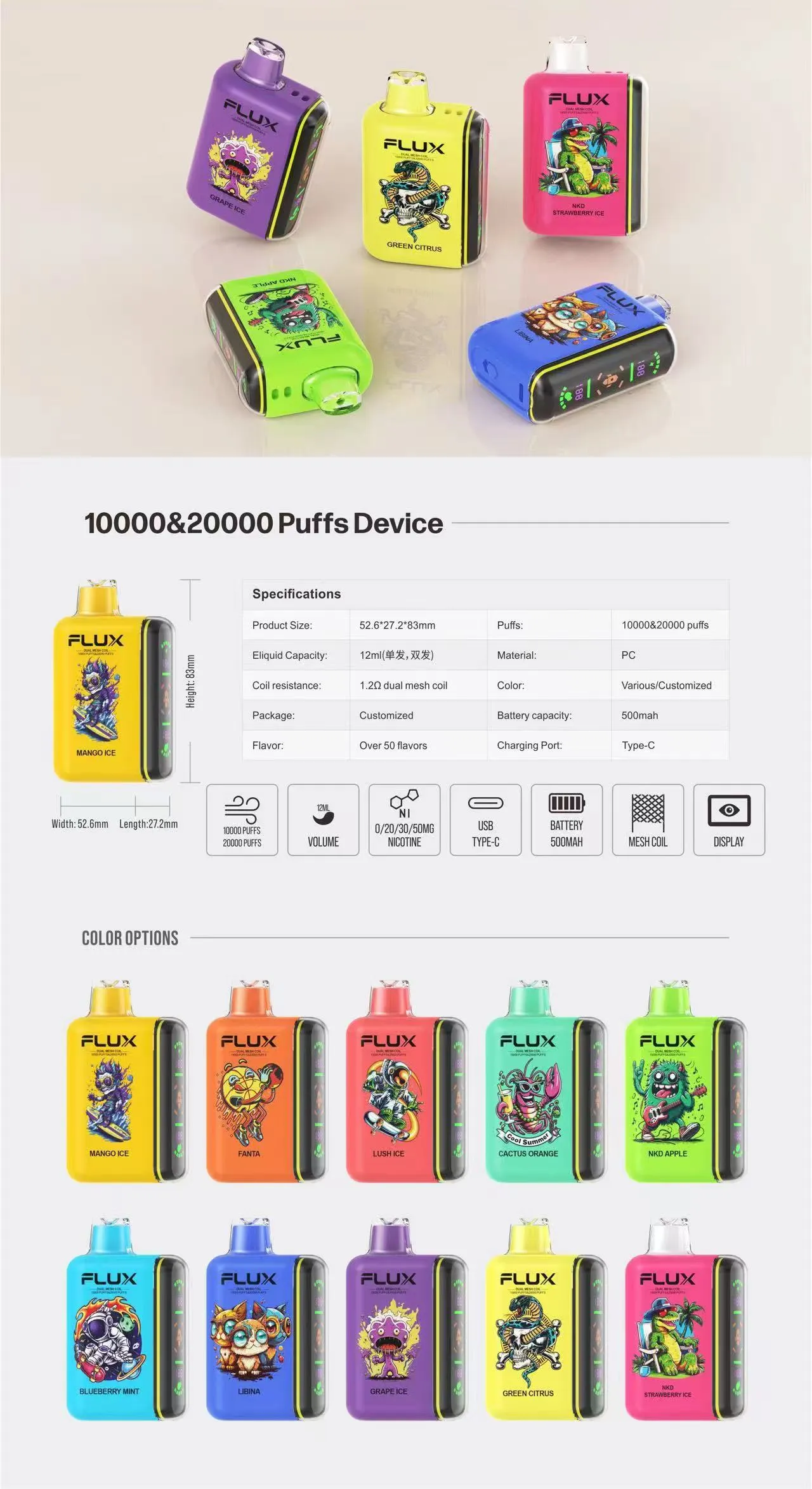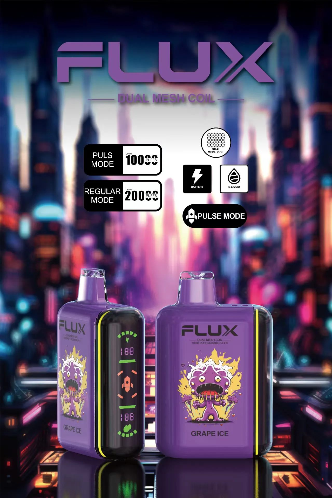 FLUX has been a top choice in the market for several years, earning a reputation as a trusted brand for those seeking consistent quality and exceptional flavor. With up to 20,000 puffs, FLUX offers a wide variety of flavors to suit every preference, from fruity to menthol and classic options. Its long-standing success speaks to its reliability and performance, making it a favorite among both new and experienced users. Featuring a sleek design, portability, and impressive durability, FLUX continues to provide an outstanding experience that has earned the loyalty of customers over time. Choose FLUX for a proven, satisfying experience every time.